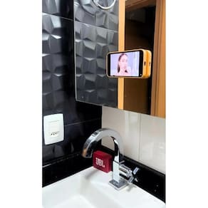 Mais praticidade e criatividade para você Seu celular agora pode ser facilmente grudado em quase todas as superfícies lisas -espelhos para ver seus vídeos enquanto se arruma ou para gravar sua rotina de cuidados diários. -no azulejo da cozinha enquanto assiste um vídeo de receitas; -no box do banheiro enquanto toma banho assistindo seu vídeo favorito; -na janela do carro gravando seu passeio no ângulo mais criativo possível