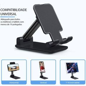 Com esse Suporte Retrátil você pode assistir as receitas enquanto cozinha ou assistir series de TV enquanto toma banho, o suporte móvel também é o seu melhor parceiro e uma das ferramentas que você precisa ter Ele é extremamente fácil de Guardar pois o suporte de telefone celular é dobrável, você pode dobrar o suporte após o uso, diminuir o volume e colocá-lo em seu bolso, bolsa ou mala para levar a qualquer lugar. Possui almofadas de silicone superior totalmente cobertas e base antiderrapante que protegem bem seus dispositivos de arranhões e deslizamentos, toque facilmente na tela sem se preocupar com o telefone escorregar ou cair. Especificações: - Não cobre as Legendas de filmes, series e jogos - Material ABS Liga de Alumínio - Quatro almofadas de silicone na parte de base que toca a mesa - Excelente desempenho detalhado: - Orifício inferior para carregar o telefone - Compatível com dispositivos de 4 a 10 polegadas. - Você pode usar o celular verticalmente e horizontalmente. - Facilmente dobre e desdobre o suporte - Ajustamento da Barra do Suporte 90° - Contração Elástica - Antiderrapante, não arranha o celular - Altura 11cm - Comprimento 6.5cm - Largura 2.5cm - Peso: 179g Marca: Não Informado