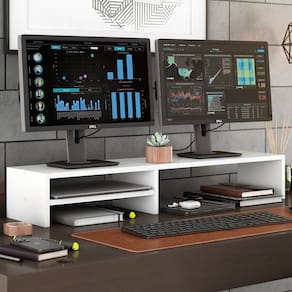 Que tal o Suporte Stand Base Para Tela Monitor Laptop Soft Elevado em MDF com 01 Prateleira?