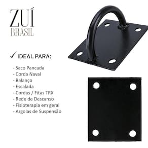 Suporte trx ultra resistente. O suporte de parede zuí brasil é extremamente prático e versáti, além da facilidade de instalação, a gama de exercícios que esse aparelho possibilita é enorme. Ideal para atividades com treino de força funcional, treino desportivo específico, treino de grupo indoor e outdoor, flexibilidade e reabilitação, personal trainers, alta competição, artes marciais, dança, treino militar, fisioterapia, lutas, etc. O suporte para parede zuí brasil garante a maior segurança e tranquildade para seu treino. É fabricado em aço carbono, chapa grossa garantindo maior resistência, solda mig reforçada, é uma peça super durável e excelente qualidade. Seu tamanho é maior que os suportes comuns, foi desenvolvido especialmente para maior segurança e tranquilidade na prática de seus exercícios. Indicado para academias, residências, clínicas, stúdio de pilates e lutas, condomínios, entre outros. Características: Marca: zuí brasil Produto: Dimensões: 7cm altura x 12cm comprimento x 10cm largura Peso: aproximadamente 450g Aço carbono forte e soda mig reforçada Pintura eletrostática, não oxida e não descasca. Contém: 01 unidade suporte Não acompanha parafusos Limpeza e conservação: Limpe apenas com pano úmido e sabão neutro Não seque ao sol ou secadores elétricos Guardar fora do alcance do sol Não pisar Seguindo essas instruções, você terá seu produto por muito mais tempo. Qualquer dúvida estamos à disposição Aguardamos sua compra.