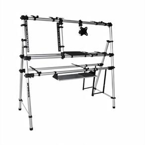 É um rackfabricado em alumínio, o que o torna leve para transporte,totalmente desmontável e resistente para suportar aparelhos pesados. Os Suportes são modulares podendo acomodar e adequar o seu equipamento da melhor forma e posição para sua performance de trabalho.