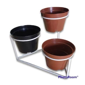Suporte Triangulo de Mesa para 3 Vasos 11 (Branco) JC Descrição * Suporte Triangulo de mesa para 03 vasos de plantas é feito artesanalmente em Arame BTC e com acabamento em pintura eletrostática, o que traz resistência e durabilidade ao seu suporte. * Podem ser utilizados sobre estandes e mesas, trazendo delicadeza e beleza ao ambiente. Características * Material: Arame BTC (Baixo teor de Carbono) * Pintura Eletróstática * Cor: Branco * Altura:16,5 cm * Largura: 22 cm * Peso: 0,310g * Carga Máxima: 5Kg * Diâmetro do encaixe do vaso: 10 cm * Vasos não inclusos Informações/Dicas/Usos * Modelo ideal para vaso 11 Cultiv.me trabalha desde 2013 para trazer os melhores produtos de jardinagem ao alcance de todos. Acreditamos que cuidar da natureza deve ser acessível para todos. Cultiv.me o verde que faltava.