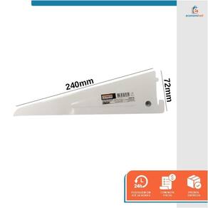 CARACTERÍSTICAS TÉCNICAS: Material: Aço pintado Medidas: 240mm base prateleira x 72mm base parede Espessura da chapa: 2mm Peso suportado: 60kg Distância entre os encaixes horizontalmente : 1cm Marca: Starfer Ref.: 13040710 Ean: 7891638060602