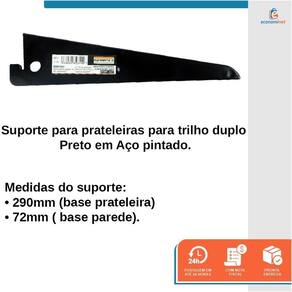 CARACTERÍSTICAS TÉCNICAS: Material: Aço pintado Medidas: 290mm base prateleira x 72mm base parede Espessura da chapa: 2mm Peso suportado: 60kg Distância entre os encaixes horizontalmente : 1cm Marca: Starfer Ref.: 13070822 Ean: 7891638060657