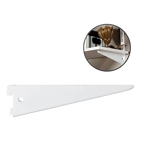 O Suporte para Trilho é ideal para fixar prateleiras com largura de até 370mm. Com encaixe duplo, pode ser utilizado com trilhos de rasgo duplo. Seu design com acabamento em pintura epóxi garante maior resistência e durabilidade. CARACTERÍSTICAS TÉCNICAS:Material: Aço pintadoMedidas: 390mm base prateleira x 72mm base parede Peso suportado: 60kgDistância entre os encaixes horizontalmente : 1cmMarca: Starfer
