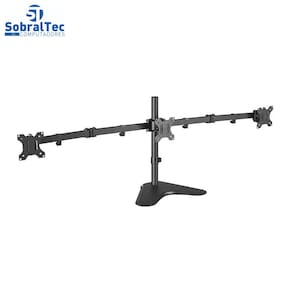 O suporte de mesa ELG, para informática, modelo T1236N, pode sustentar até 3 monitores simultaneamente, pois possui duas articulações independentes para fixação na traseira dos monitores, as quais permitem girar lateralmente ou inclinar as telas, para uma melhor visualização e ergonomia, além de ajuste de altura na coluna vertical do suporte. É compatível com monitores e TVs LCD, LED de 13" a 27", compatíveis com os padrões de fixação VESA 75x75mm e VESA 100x100mm, presentes na traseira das telas ou outros tamanhos de aparelhos com fixação traseira e peso compatíveis com este modelo de suporte. Possui estrutura em aço carbono, aliando durabilidade, segurança e excelente acabamento. A alça plástica para passagem e organização dos cabos complementa uma instalação prática, organizada e ainda conta com encaixe para as ferramentas de ajustes do próprio suporte. Prático e versátil, também permite girar as telas nas posições retrato ou paisagem, além de suportar até 8Kg por monitor. CARACTERÍSTICAS: Quantidade de TVs/Monitores: 3 Giro horizontal: 360o Rotação da tela: 360° (retrato / paisagem) Capacidade máxima: 8 kg para cada monitor Ajuste de inclinação (TILT): -45° a +45° Altura máxima: 46,6 cmAjuste de altura sem ferramentas Compatível com TVs planas e curvas Fácil instalação. Já vai pré montado. Giro de 360o Organizador de Cabos Rotação retrato e paisagem Sistema de ajuste de altura Sistema de ajuste de inclinação DADOS TÉCNICOS: Material: Aço Carbono Acabamento: Tratamento anticorrosão e pintura eletrostática ITENS INCLUSOS 01 Suporte Articulado de Mesa para 3 Monitores de 13" a 27" com Regulagem de Altura - T1236N Manual de instruções / Certificado de Garantia. Parafusos e buchas para fixação do suporte. Parafusos para fixação da TV / Monitor.