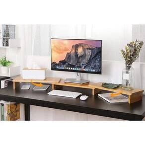 Suporte Triplo Monitor Tv Mesinha Em Madeira Maciça