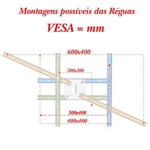 Dados do produto: - compatibilidade: tv's led, lcd, plasma, 3d e smartv de 10 até 65 - serve para todos os modelos de telas, inclusive tela curva - furação vesa=mm : 600x400; 400x400; 300x200; 200x200; 100x100 ou 75x75 - fixação da tv em 4 pontos, acompanham parafusos m4 e m6 - material: aço e pintura epóxi