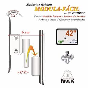 - Este conjunto inovador possibilita que a montagem do suporte e a instalação da TV, seja feita por uma só pessoa, mesmo com pouco conhecimento ou prática.