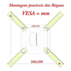 - Furação (VESA=mm): 200x200; 200x100; 100x100 ou 75x75