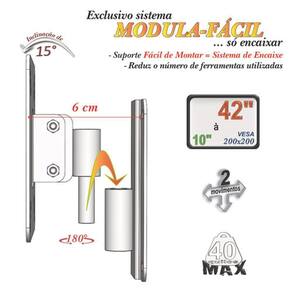 - A montagem versátil das réguas prolongadores ajustam-se perfeitamente a furação VESA do gabinete da TV, não deixando pontas desnecessárias e deselegantes.