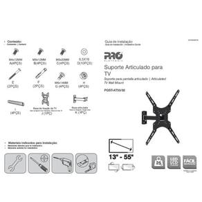 Conteúdo da embalagem: 1 suporte articulado para tv 13 a 55 polegadas Parafusos e buchas para fixação na parede