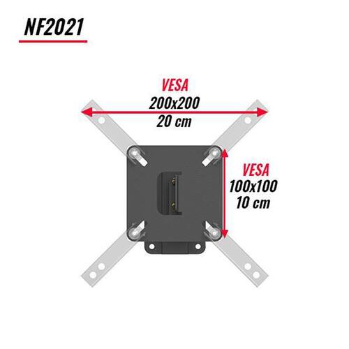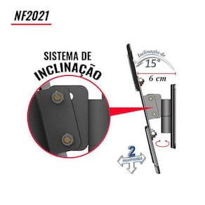 Com 2 movimentos lateral e inclinação frontal de 0 e 15 graus, para furação vesa=mm de 75 x 75; 100 x 100; 200 x 100 ou 200 x 200.