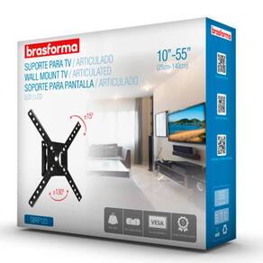 Suporte Tv Universal Articulável 10 - 55 Sbrp120 Suporte tv universal articulável 10 - 55 sbrp120 Suporte articulado brasforma para tvs lcd, led, plasma, 3d e smart tv de 10 até 55 polegadas (com vesa máximo de 400x400mm). Permite inclinação e articulação (2 movimentos). Permite ajustar a tv para assistir de vários ângulos. Ideal para salas, escritórios, quartos, hospitais, restaurantes, entre outros locais. acompanha: