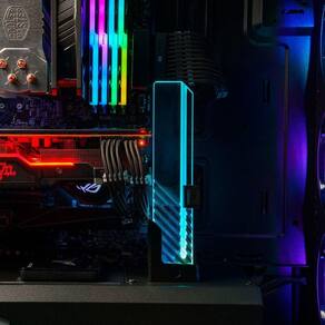 Elimine Torções Na Placa Gráfica Conforme as placas gráficas ficam cada vez maiores e mais pesadas, os encaixes PCI-E sofrem estresses maiores por conta do peso. O Suporte ARGB de GPU MasterAccessory elimina esse defeito por apoiar o peso crítico das novas GPU's.