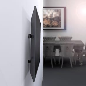 Indicado para TVs planas e curvas com peso máximo de 100 Kg e compatíveis com padrão de fixação VESA (horizontal x vertical) 75x75 a 800x400 mm normalmente encontrado em televisores de 14'' a 100'' polegadas.Possui perfil ultra slim e design compacto para deixar sua TV como um quadro decorando o ambiente.Distância mínima da parede de 2,5 cm ou máxima de 3,5 cm (com uso opcional de espaçadores).Desenvolvido em nylon reforçado e aço carbono com tratamento anticorrosão e pintura epóxi eletrostática de alta resistência, aliando durabilidade, segurança e excelente acabamento.Possui 4 pontos de fixação e trava de segurança. De fácil montagem, acompanha gabarito para instalação.Possui garantia de três anos.