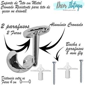Suporte Para Varão De Cortina De Teto Gesso Resistente Cromado Alumínio 5 Pçs DescriçãoNossos produtos sempre vão em caixa para garantir melhor proteção dos produtos enviado.Sempre mantenha seus dados cadastrais atualizados antes de qualquer compra, Nome completo, endereço correto, telefones para contato celular e documentos para emissão de nota fiscalSuporte para varão de teto de gesso para cortina Varão Simples 28 mm Cromado 5 peças5 Suporte para varal de Cortina de Teto para Varão Simples 28mm CromadoConteúdo:5 Suporte para Bastão de cortina simples: 28mm em alumínio10 Parafusos10 Buchas Fly para teto de gesso borboleta Composição:Alumínio Maciço: Cromado Resistente e leve Marca: Decor Ibitinga Suporte De Varão Para Cortina De Teto Gesso