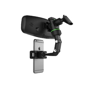 Braçadeira de liberação rápida monta o suporte do telefone no espelho retrovisor interior sem bloquear a visibilidade quando você dirige.