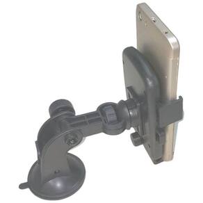 Suporte veicular totalmente articulado com rotação de 360 graus e trava automática. Alças laterais expansíveis até 8,5 cm. Fixação por ventosa de silicone aderente para painel, para-brisa, vidro, mesa, etc. Múltiplos ajustes para posicionamento.