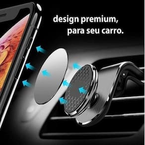 Suporte Veicular para Celular com Design Exclusivo. Veja abaixo mais detalhes: - Modelo exclusivo - Elegante e Prático - Sem barulhos no carro - Graças a base emborrachada ele não fica vibrando e causando barulhos indesejados; - Material Premium - Não é plástico, é alumínio. 1 disco de metal com fita auto-adesivo. - Firme de verdade - Graças aos 4 imãs internos seu aparelho ficará firme mesmo com trepidação; - Mais segurança na condução - Você consegue tirar e colocar o aparelho só com uma mão; - O suporte não interfere no sinal do celular ou GPS; - Com este design ele não atrapalha o carregamento do aparelho enquanto utiliza; - Universal- Funciona com qualquer aparelho Celular.