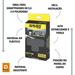 Suporte veicular para celular naveg nva 620-1 Informações do produto O suporte veicular para celular naveg: Tudo o que seu carro precisa, prático, este suporte é indicado para você colocar o seu smartphone preso no painel. De fácil manuseio. Seu aparelho pode ficar carregando e você ainda mexer confortavelmente na tela. Só não faça isso enquanto dirige. Ideal para verificar a rota de viagem no mapa. Ver quem está ligando, dar mais uma carga antes que a bateria acabe. Indicado para aparelhos com tela de 3.5 a 6 polegadas Características - alta estabilidade e força. - projetado para iphone e smartphones de 3,5 a 6 polegadas. - suporte veicular para celular - para fixação no painel do carro Especificações técnicas: Produto: novo Marca: naveg Modelo: suporte veicular de celular Tipo: profissional Material: plástico Cor: cinza com preto Garantia: 3 meses