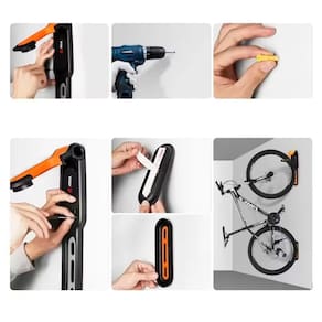 Seu gancho ajustável permite fixar a bicicleta tanto para cima quanto para baixo, se adaptando às suas necessidades. Ideal para bicicletas de até 16kg, que podem ficar suspensas na parede. Para bicicletas acima de 16kg, a roda traseira deve ficar apoiada no chão, com a roda fixada ao suporte utilizando fita dupla face.