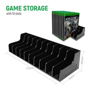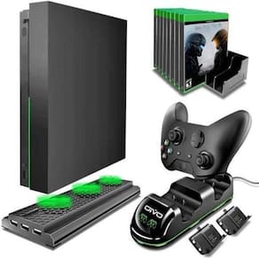 Itens inclusos: - 01 suporte cooler vertical - 01 carregador duplo para controle xbox one x - 02 baterias recarregáveis - 01 suporte para 10 jogos