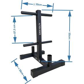 Suporte expositor de anilhas e barras.Produzido em aço carbono;Pintura eletrostática microtexturizada;Altura: 55 cmLargura: 35 cmDiâmetro suporte anilha: 2,54 cmDiâmetro suporte das barras: 3,5 cmPeso do suporte 4,5 kgSuporta até 200 kg de anilhas.Importante: as anilhas não acompanham o suporte. Marca: Iron Health Equipamentos Esportivos