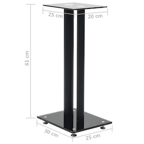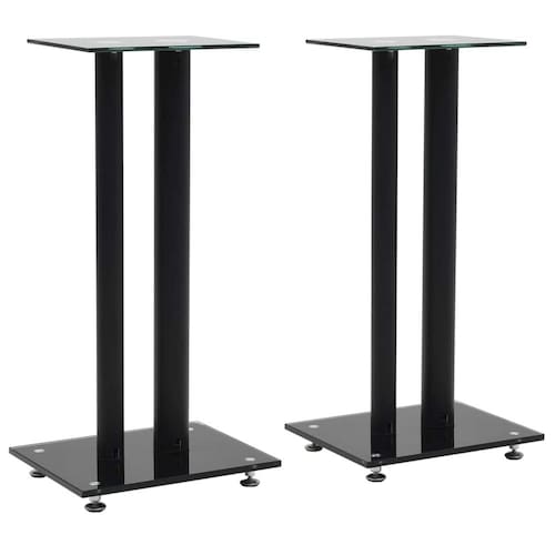 Graças à superfície de vidro temperado resistente e aos pilares robustos, seus alto-falantes receberão o suporte necessário. As quatro almofadas de plástico antiderrapantes sob a placa base ajudam a reduzir a vibração e evitar que o carpete ou o piso de madeira sejam danificados pela