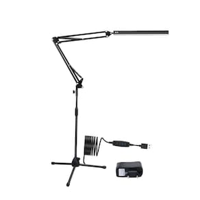 Luminária LED - Base: tripé - Altura da haste central do suporte: 74 cm - 128 cm - Comprimento da haste articulada superior do suporte: 72 cm 36 cm + 36 cm - Rotação 360 na base da haste. - Seu cabo USB permite a conexão em dispositivos, tais como; carregadores, notebooks, desktops, power bank, etc. - Controle com função Liga/Desliga, aumento/redução de brilho 10%,30%,50%,80%,100% ,ajuste de temperatura 3200k/4500k/6500k - Proporciona um visual limpo e para sua estação de trabalho. - Material: aço - Cor: preto Marca: Não Informado