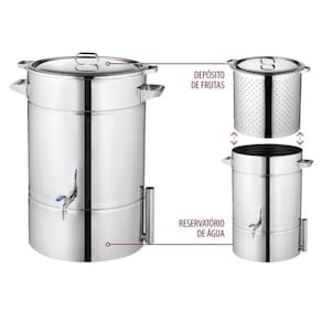 Composto de: 1 depósito de frutas + 1 reservatório de água + 1 tampa de vidro + 1 fogareiro