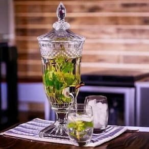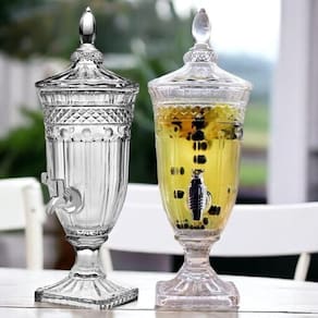 A torneira da suqueira de vidro tem um bico dosador, facilitando na hora de servir Design criado para valorizar a sua experiência e facilitar a sua degustação O kit suqueira de vidro tem capacidade para 1,8 litros, é um acessório perfeito para usar em suas festas, reunião ou no dia a dia Decora o ambiente em alto relevo, o torna extremamente elegante