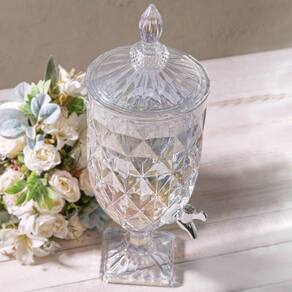Suqueira de Cristal com Pé 5 Litros Diamond Lyor Transparente com Torneira Dispenser para Bebidas