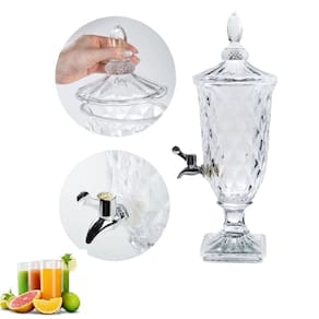 Suqueira 3 Litros. A Suqueira é perfeita para servir sucos, água aromatizada ou drinks, com capacidade para 3 litros. Seu design elegante em vidro vitrificado combina com qualquer ocasião, desde casamentos até festas informais. Suqueira De Vidro 3l Diamond Transparente Luxo Bebidas Suco