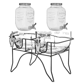 Vantagens principais: Praticidade: Fácil de limpar, podendo ser lavada à mão ou na lava-louças; Durabilidade: Feita em vidro transparente de alta qualidade; Estabilidade e estilo: Suporte de metal resistente e elegante; Torneiras práticas: Garantem um serviço fácil e eficiente; Personalização: Inclui espaço para identificar as bebidas com charme.