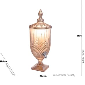 Sobre o Produto: Suqueira de Cristal âmbar torneira de plástico prata com capacidade para 5 Litros.