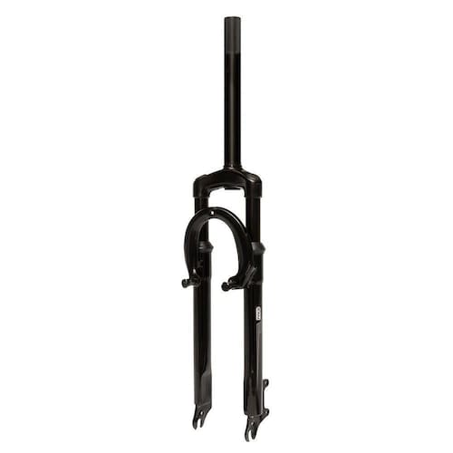 - Fabricado em aço 21.1mm - Curso de 55mm - Medidas: comprimento do canote 185mm, sendo 65mm com rosca, para suporte de guidão 21.1mm - Indicado para bicicletas aro 26 - Tipo de amortecimento: mola - Suporte para freios a disco e v-brake - Composição: canelas, ombro e tubo interno de aço - Cor: Preto