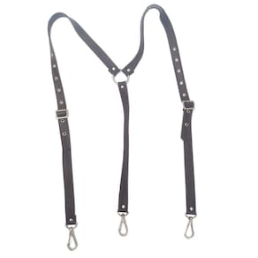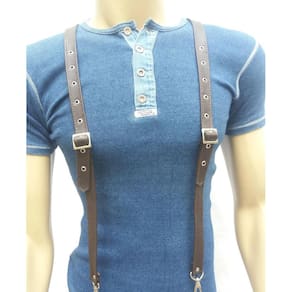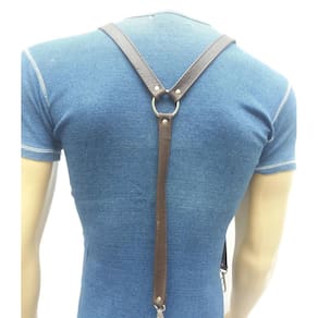 Suspensório de couro ajustável através de fivelas. A regulagem de tamanho e feita por ilhoses. As tiras são presas em uma argola nas costas, sendo duas na frente e uma atrás, com mosquetões nos passantes da calça. Este produto é indicado para ser com calça jeans. Especificações: Cor: Marrom Ocasião: Casual Materiais: couro bovino 100% Fivelas: zamak Rebites e ilhoses: ferro Mosquetões: zamak Argola: ferro Medidas: Tiras com cerca de 20 mm de largura 1,20m de comprimento máximo, ajustável a partir de 0,98m Fivelas: 20mm Argola: 32mm Cuidados: Por se tratar de couro o produto não pode ser lavado. A limpeza deve ser feita com pano umedecido em sabão neutro ou vinagre. Também pode ser óleo hidratante para manter o brilho e maciez. : Efetuamos a troca em 7 dias no caso de defeito de fabricação. Produto com a qualidade do ateliê Blood Art