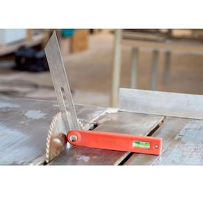 Pode ser ajustada para duplicar um ângulo a partir de um padrão, ou pode ser facilmente convertida em transferidor. Contém uma bolha de nível embutida no corpo em ABS e lâmina de aço inox.