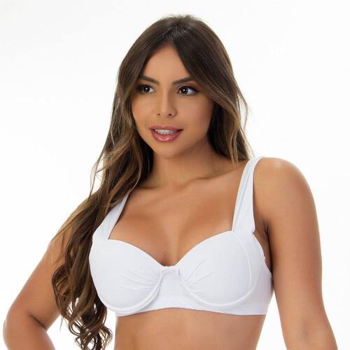 Detalhe especial fica na alça em microfibra tecido duplo que inicia no bojo e se estende até a regulagem das costas; formando assim a alça principal, tornado o modelo ainda mais confortável com sustentação anatômica.