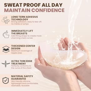 - Cobertura invisível do sutiã oculto: o sutiã push up invisível é completamente invisível e sem vestígios quando utilizado. Sutiã de elevação oculto microporoso e respirável, dando adeus ao abafamento e rigidez. O sutiã push-up pegajoso para mulheres é leve e confortável de usar por um longo tempo. Os adesivos para seios em forma de colher podem ser reutilizados e rejuvenescidos com água limpa. O sutiã aderente com elevação é compatível com tecidos transparentes, redefinindo a privacidade e o conforto. Sutiã invisível cria formas suaves