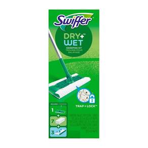 Swiffer sweeper starter - kit para limpeza de pisosContém 1 embalagem com 1 kit e cada kit contém:- 1 moop- 7 toalhas secas swiffer s. Dry cloth refil- 3 toalhas úmidas swiffer s. Wet mopping refilCabo de alumínio resistente e leve. Ótimo para cantos apertados, embaixo dos móveis e acessórios de banheiro.Toalhas secas com a tecnologia trap + locktm que retém a sujeira, poeira e cabelos.Toalhas úmidas texturizadas que removem as sujeiras mais difíceis.Seguro em todos os tipos de pisosNão utilizar swiffer sweeper wet em pisos inacabados, pisos de madeira encerados ou oleosos, azulejos não selados ou carpetes, pois eles podem ser sensíveis à água.Produto importado dos eua