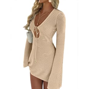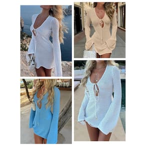 - Características: saída de praia feminina de crochê, mangas compridas, laço frontal, vazado, malha. Este maiô feminino é perfeito para praia, férias, uso diário.