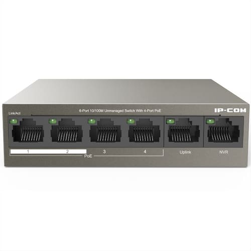 Produto: Switch 6 Portas IP-COM F1106P-4-63W - 10/100 Mbps - 4 Portas PoE e 2 Portas Uplink - Não Gerenciável