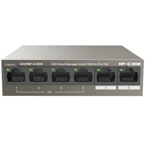 Produto: Switch 6 Portas IP-COM G2206P-4-63W - Gigabit - 4 Portas PoE e 2 Portas Uplink - Gerenciável em Nuvem