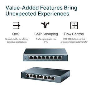 Gabinete de Metal Contribui Para Maior Vida Útil do Produto: Os componentes internos do TL-SG108 são protegidos por um gabinete de metal de alta qualidade para garantir a vida útil do produto. Aprovado em rigorosos testes de confiabilidade, o TL-SG108 oferece um desempenho de comutação no qual você pode confiar.
