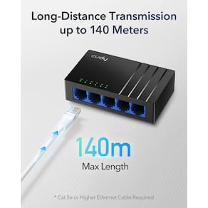 - Rede Swtich, EhTERNET SPLITTERNET. 5 portas RJ45 10/100/1000Mbps oferecem conectividade ao seu roteador ou modem para conexões adicionais com fio (laptop, console de jogos, impressora, etc. ).