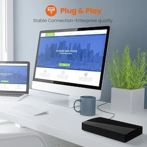 - ?Plug and Play?Configuração fácil sem necessidade de configuração ou software, operação silenciosa, SG108 é a escolha perfeita de switch Gigabit Ethernet de 8 portas