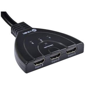 Switch Hdmi 3 Entradas E 1 Saída 1.3v Com Suporte 3d E 1080p - Chega de ter que ficar trocando cabo HDMI entre Notebook, Vídeo Game e Decoder. Conheça o novo SWITCH HDMI VINIK, com este aumento do número de equipamentos em alta definição o SWITCH HDMI VINIK é uma excelente solução para TVs que possuem apenas uma entrada HDMI ou quando as entradas forem insuficientes ou de difícil acesso para conectar todos os equipamentos. O SWITCH HDMI VINIK conecta até 3 equipamentos com saída HDMI a uma única entrada HDMI da sua televisão, sem perder a qualidade de som e imagem. - Permite conectar até três equipamentos com saída HDMI como DVD player, Blu-ray player, Home Theater, notebook, câmera digital, filmadora, videogame entre outros equipamentos ocupando apenas uma entrada HDMI da sua televisão. Com isso garante que seus aparelhos e cabos tenha uma vida útil muito maior, pois evita que desconecte frequentemente os aparelhos.Para selecionar um dos três equipamentos utilize o controle remoto (Se incluso) ou botão seletor no painel do produto e o sinal será transmitido para sua TV e possui 3 LEDs que indicam a entrada HDMI em uso. - Suporta os formatos de áudio digital Dolby TrueHD e DTS-HD e a tecnologia de vídeo Deep Color, compatíveis com a versão HDMI 1.3b que proporciona imagens nítidas, brilhantes e excelente qualidade de som. Compatível também com versões HDMI anteriores. - Conecta facilmente os cabos HDMI sem necessidade de configuração. Os cabos HDMI necessários para conectar os equipamentos na switch não estão inclusos. Características: - transferência de qualquer sinal hdmi entre as 3 linhas despreocupadamente à vontade. - Suporta 480p, 720p, 1080i, 1080p e 1920x1200. - ele pode estender a todos os dispositivos hdmi a reprodução de sinais hdmi. - suporta vídeo de alta definição de freqência; a qualidade e definição de hdtv freqência resolução proporção atinge 1080p e computador com 1920x1200 freqência resolução relação pode conseguir construir em raio infravermelho de controle facilmente - Vídeo amplificador de banda larga: 4.95 gbps. - entrada de sinal de vídeo de nível: 1.2 volts pp. - entrada ddc sinal de nível 5 volts pp ( ttl ). - Porta HDMI: 19 pinos (femea) - Power: 5v dc. - consumo de potência máximo: 5 watts - Cabo com 45 cm de comprimento;