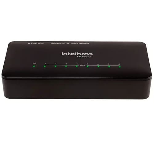 SWITCH INTELBRAS SG 800Q+ 10/1000MBPS 8 PORTAS Muito mais velocidade, tecnologia para conectar dispositivos silmultâneos e otimizar a transferência de dados! O Switch Intelbras SG 800Q+, possui 8 portas de conexão Gigabit Ethernet com incríveis 10/1000Mbps de velocidade de transmissão, tecnologia plug and play, protocolo de serviço QoS e muito mais, para garantir um fluxo de dados ultrarrápido!